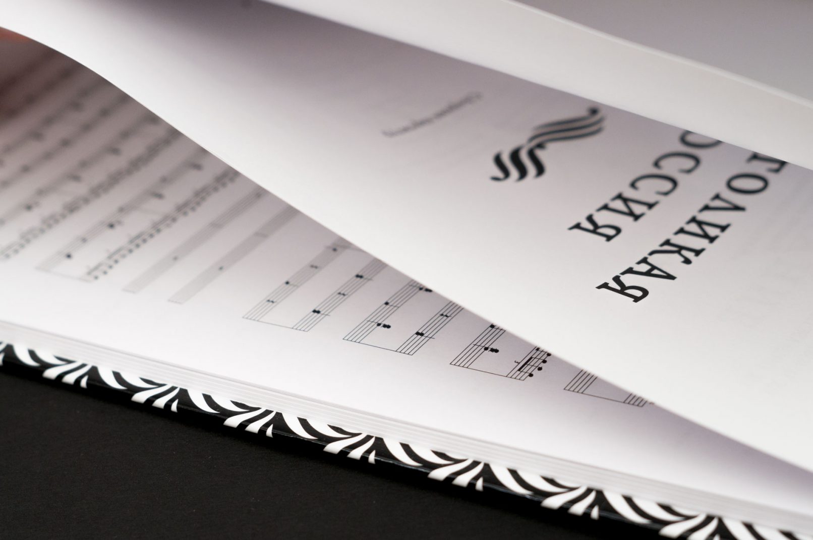 Это был очень сложный проект: мне нужно было, кроме подготовки графического оформления макета, отформатировать партитуры для оркестров и партии инструментов, сделать макет книги и всех тетрадей, и издать книгу в твёрдой обложке.
